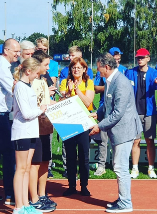 Von Kindern für Kinder: Ganze 3397€ haben die Schülerinnen und Schüler der CJD Christophorusschule Rostock nach einem Spendenlauf an uns gespendet. Unser ärztlicher Leiter und Vereinsvorsitzende Dr. med. Gernot Rücker durfte den Startschuss geben und am Ende auch den Scheck entgegen nehmen.